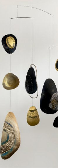 From mobiles, suspended lights, sculptural table lamps and illuminated jewelry, our fascination with light and shadows takes several forms.